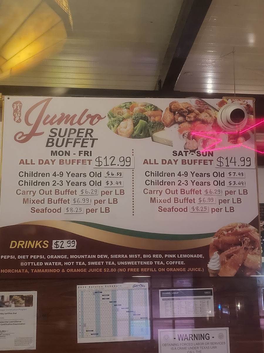 Jumbo Super Buffet Menu